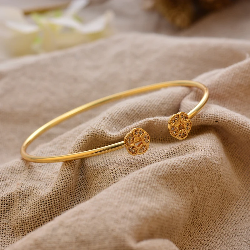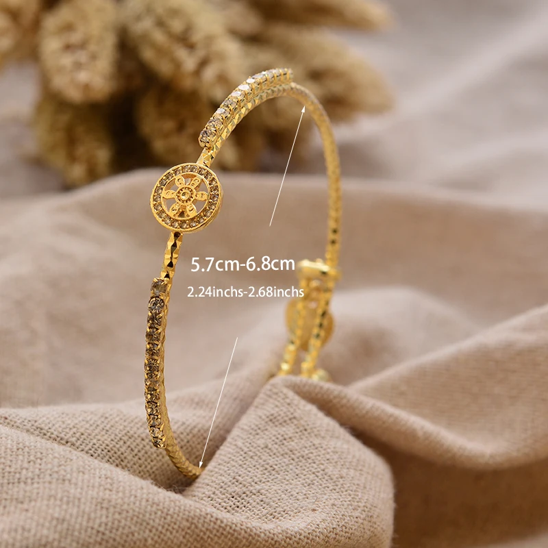 24K Gold Color Arabic Copper Bracelets for Women Men | Dubai Style Adjustable Openable Bangle | Hypoallergenic Unisex Fashion Je