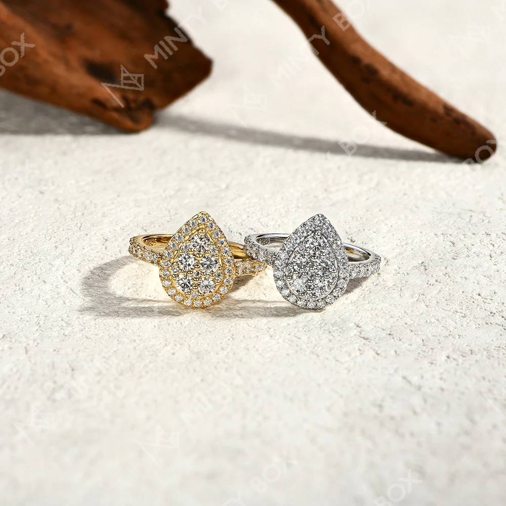 MINTYBOX S925 Sterling Silver Moissanite Engagement Halo Rings for Women 1.15ctw Lab Diamond Ring 18K Gold Plated Fine Jewelry